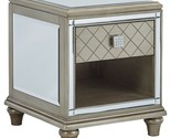 WE DO NOT SHIP TO THE FOLLOWING STATES: DC, ID, MD, ME, MS, NM, SD Glamorous, chic and sophisticated. This rectangular end table is made with a metallic silvertone finish, inset beveled mirror panels and drawer pulls adorned with faux crystals. No matter how you style it, this table is a stunning addition to your contemporary decor.
