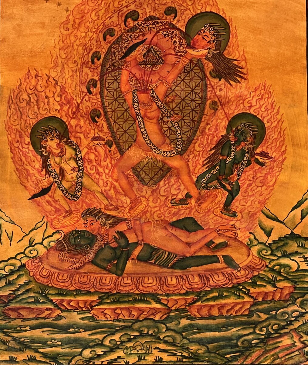 - CHHINNAMASTA NEWARI PAUBHA THANGKA PAINTING OIL VARNISHED KALI TANTRA ART