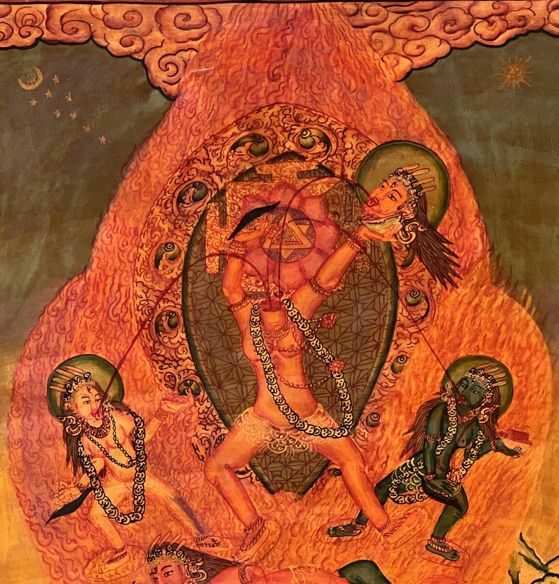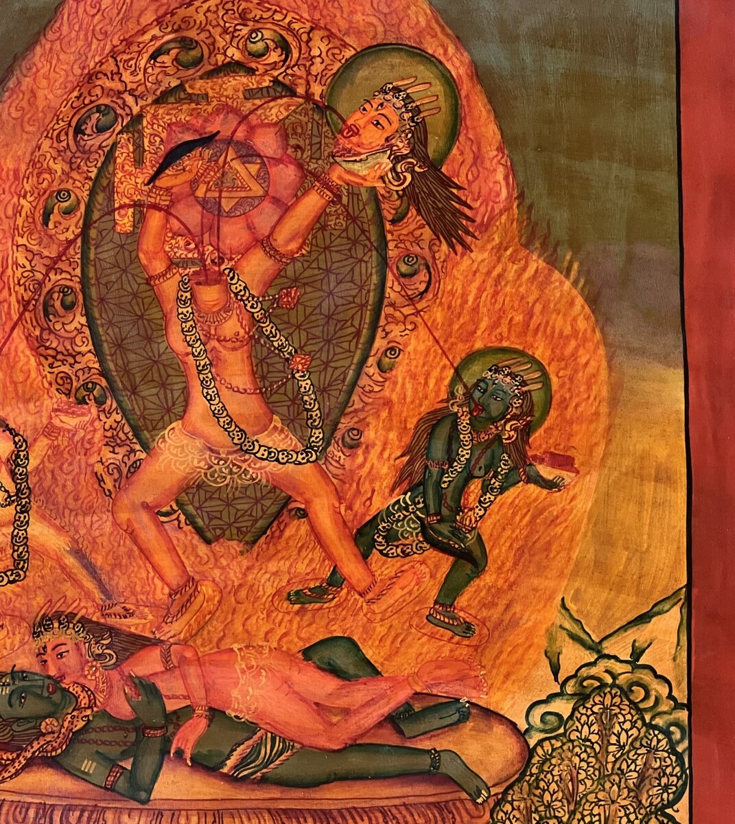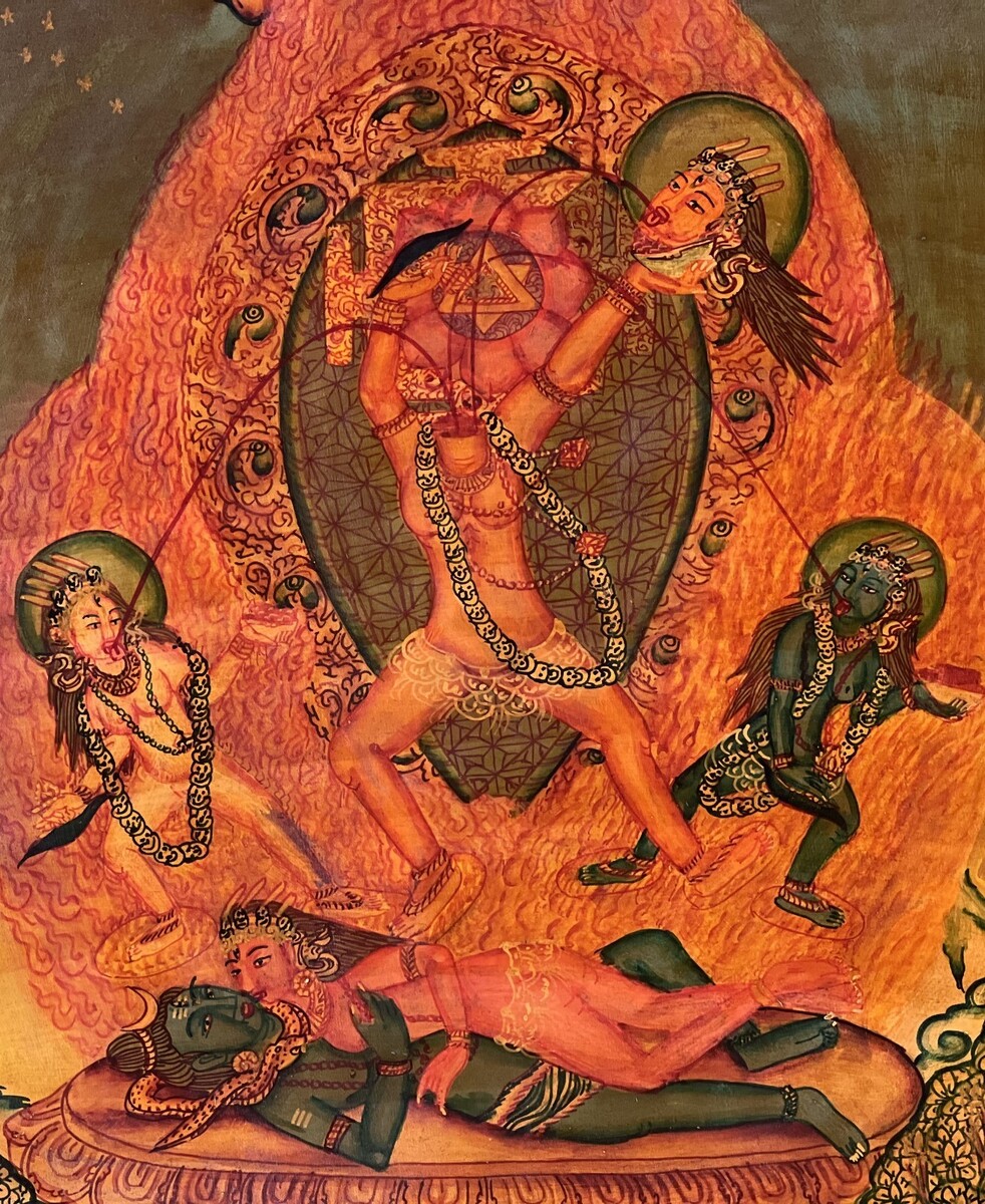 - CHHINNAMASTA OIL VARNISH NEWARI PAUBHA THANGKA PAINTING ORIGINAL KALI TANTRA ART