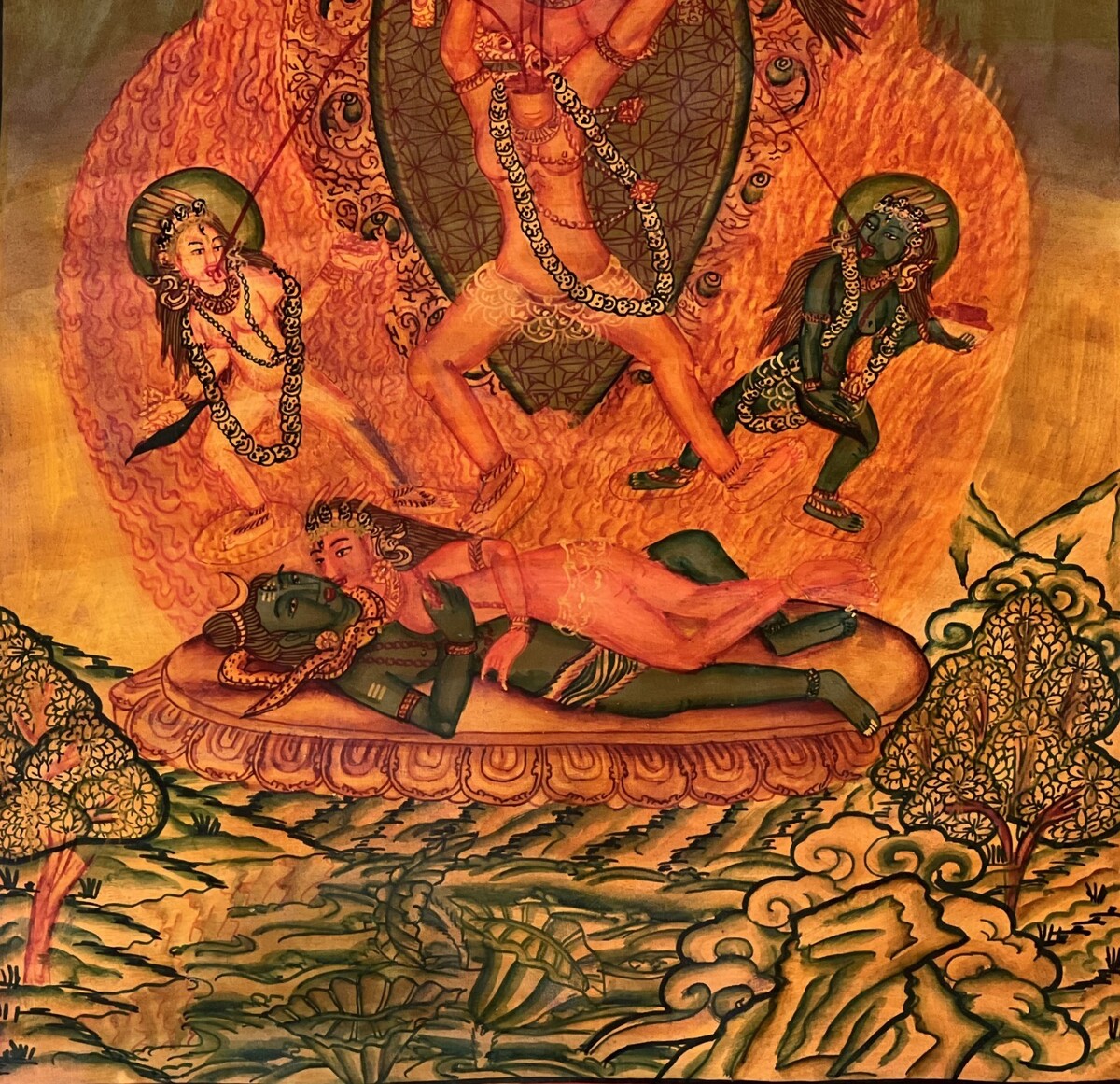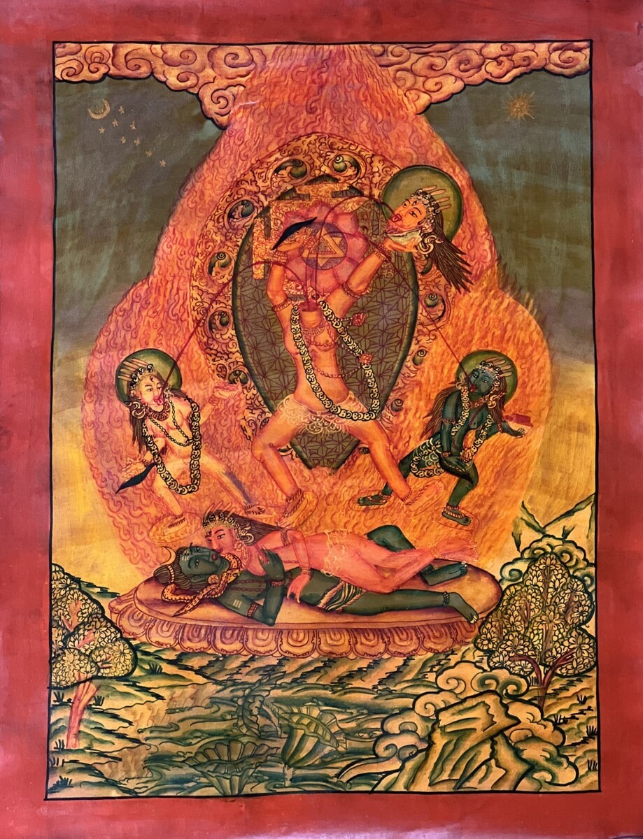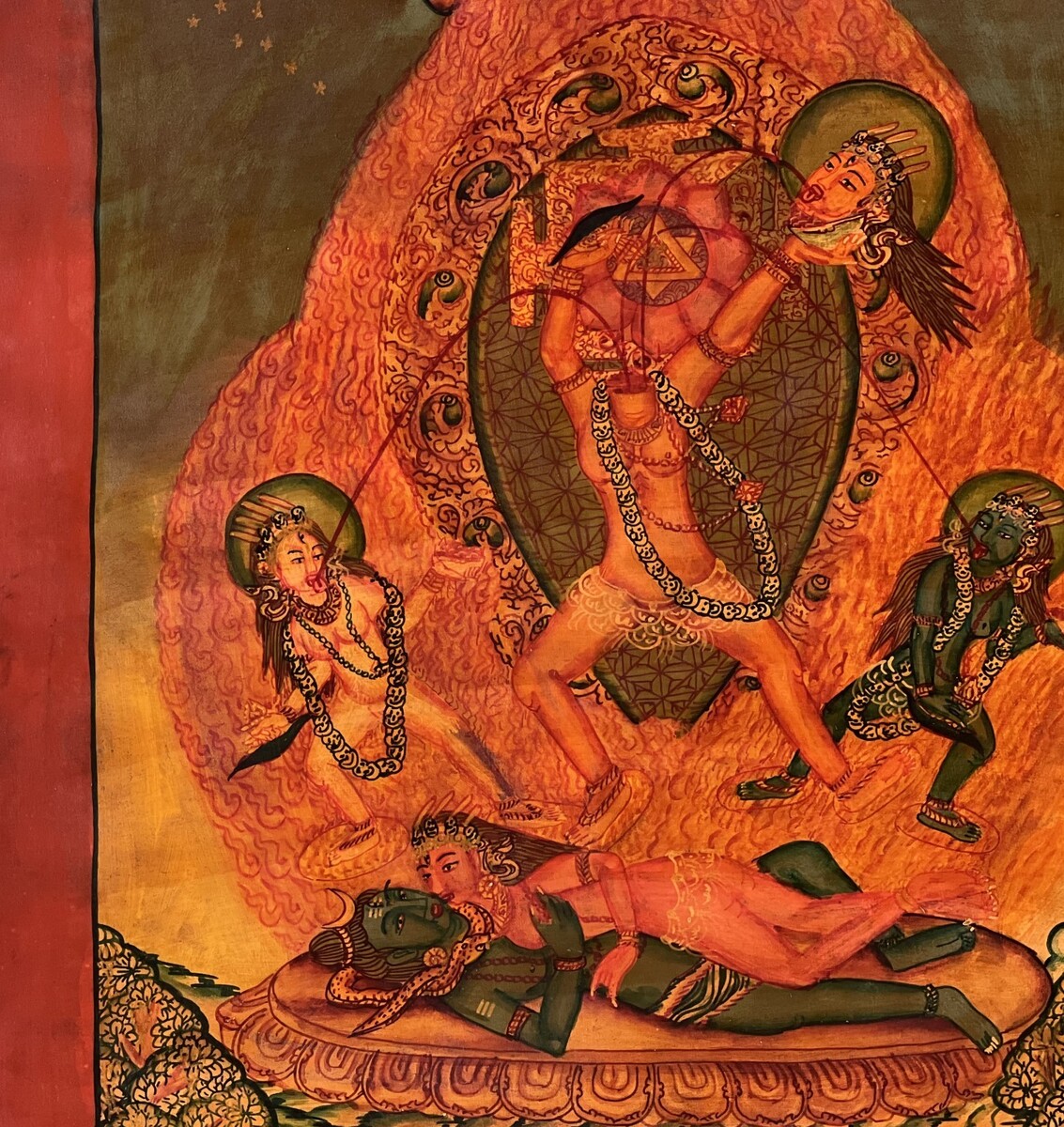 - CHHINNAMASTA OIL VARNISH NEWARI PAUBHA THANGKA PAINTING ORIGINAL KALI TANTRA ART