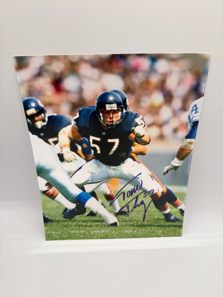 The product is an 8x10 photo of Tom Thayer of the Chicago Bears, signed by the player himself. This original photo captures a piece of football history, specifically related to the Chicago Bears and the Super Bowl XX. It is a unique and collectible item for fans of the team or sports enthusiasts looking to add a special piece to their memorabilia collection.