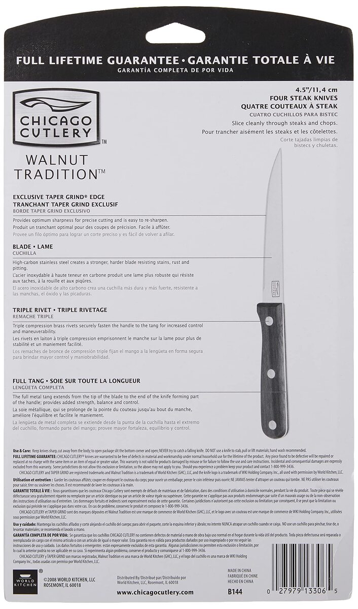 - Chicago Cutlery B144 4pc Walnut Tradition Steak Knife Set