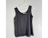 Classic and comfortable, this Chico?s black tank features a scoop neckline and delicate floral lace trim at the hem. Made from a soft, stretchy blend of nylon and spandex, it's perfect worn alone or layered under jackets and cardigans.