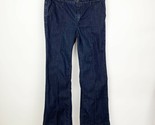 Chico’s Platinum Womens Blue Dark Wash Boot Cut Pleated Jeans Regular Size 0.5
