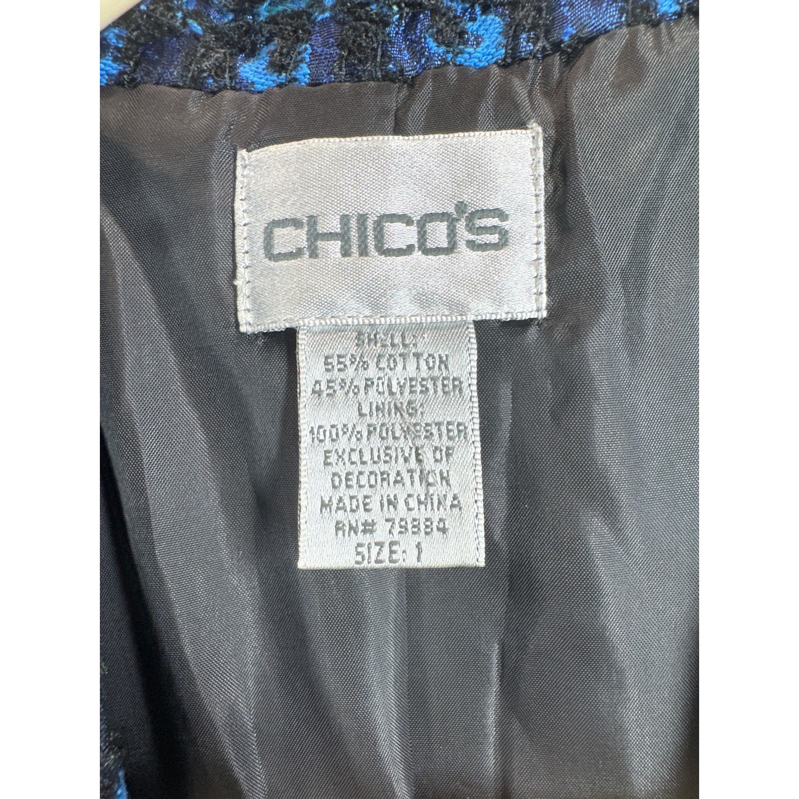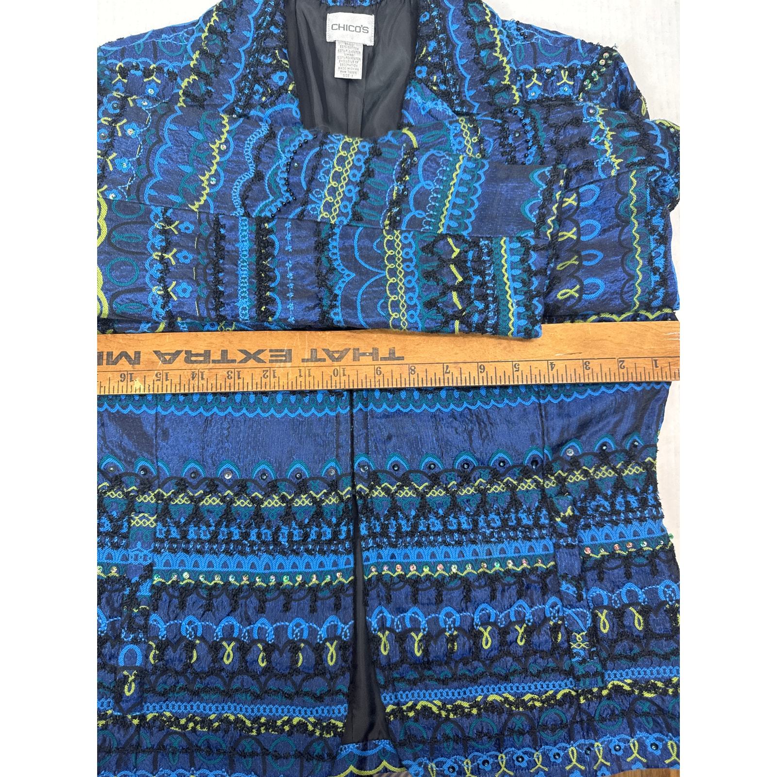 - Chico's Womens Embellished Sequin Beaded Blue Jacket Blazer Size 1 M/8 NWOT