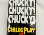 Get your hands on this rare Child's Play 3 Chucky! horror movie promo pinback from 1991. This original piece is a must-have for any movie memorabilia collector. The pinback features a menacing image of Chucky, the iconic character from the horror genre.