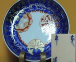 - Chinese 4.5" dish underglaze blue w red gold marked Chenghua cobalt small plate