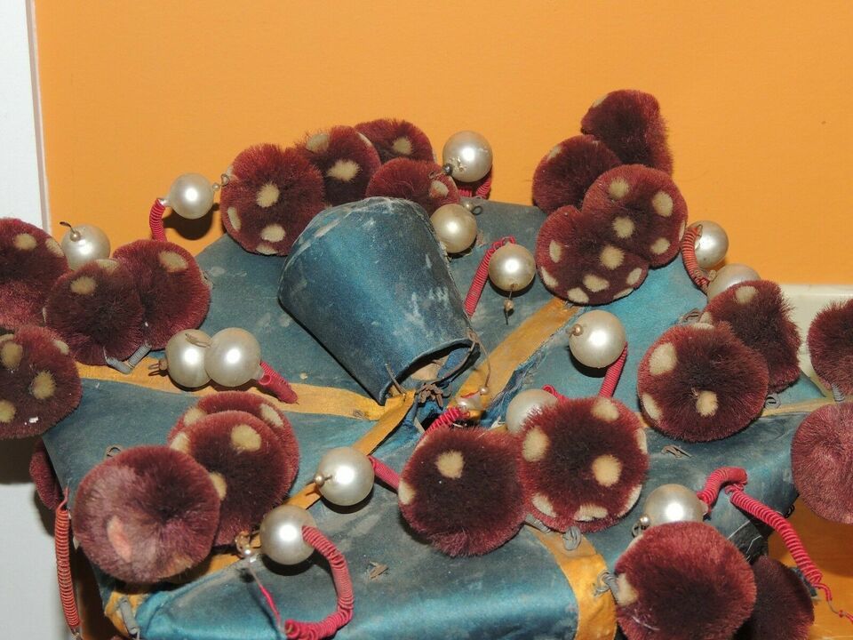 Chinese Hat hand made Silk blown glass balls ANTIQUE Opera Theatre Ceremonial