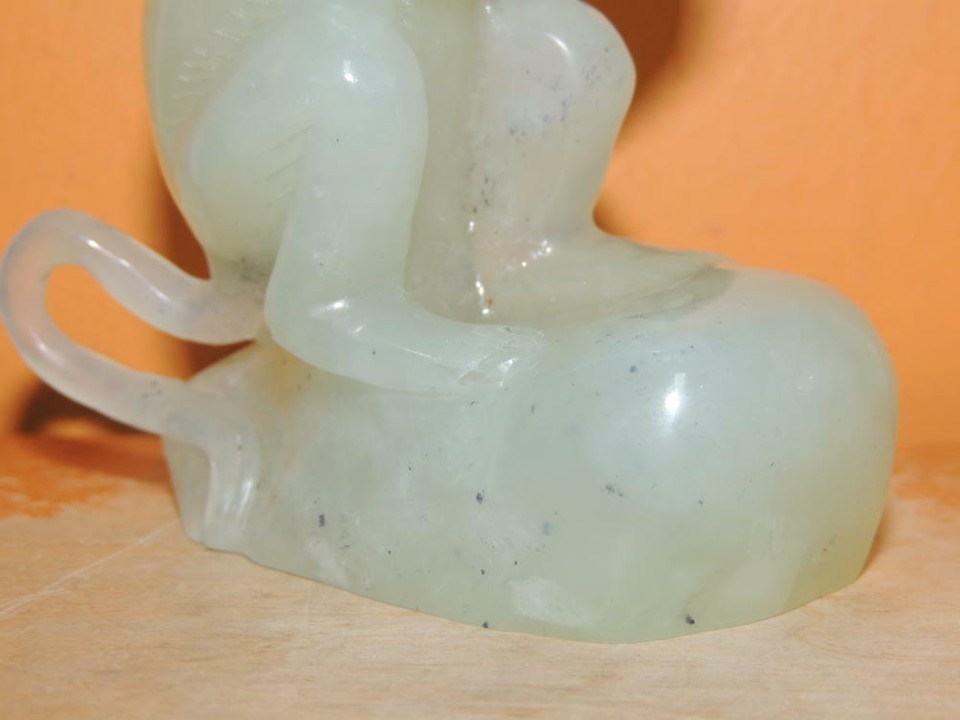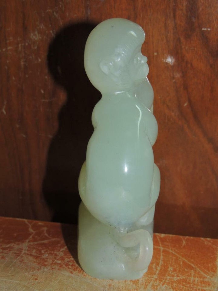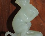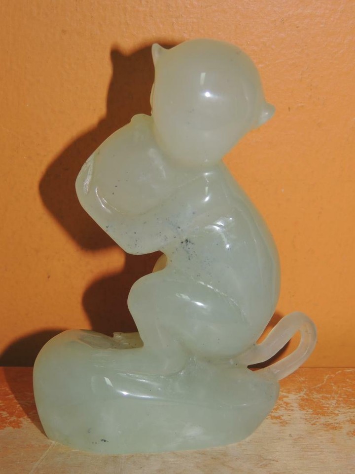 - Chinese Jade 4.5" Monkey w Peach Jadeite Nephrite celadon finely carved VINTAGE