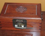 - Chinese Jewelry Box 9"x6"x3.75 wood wooden Bronze Brass Silk Lining dovetailed