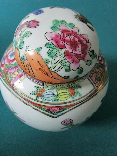1- Covered Chinese Urn, 6 1/2" tall floral decorations multicolor [82B-BASKTRACK6