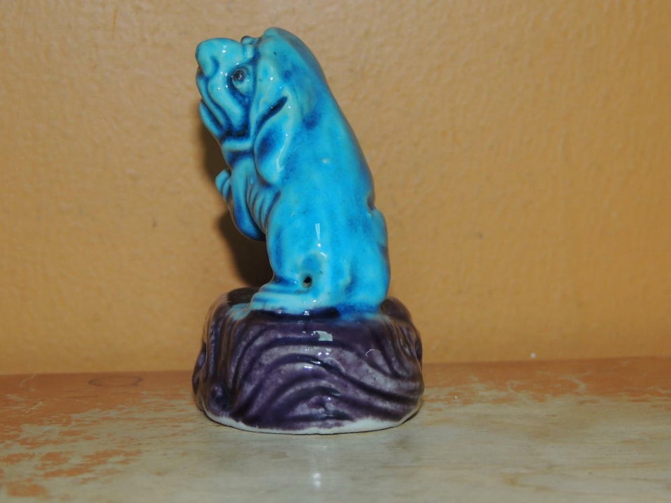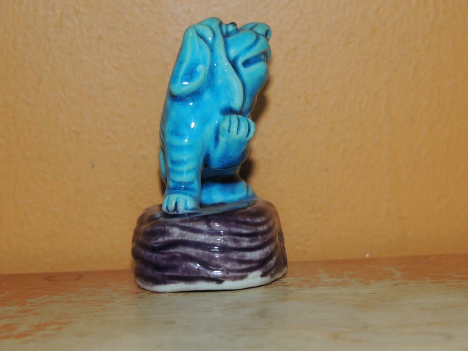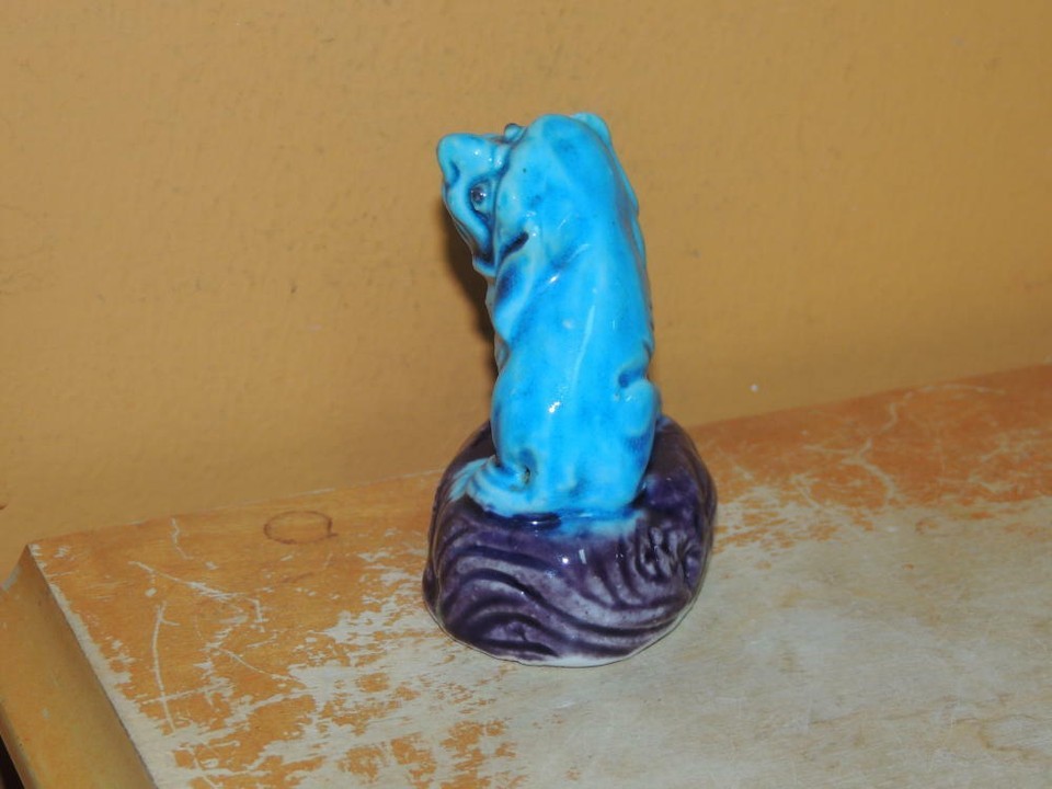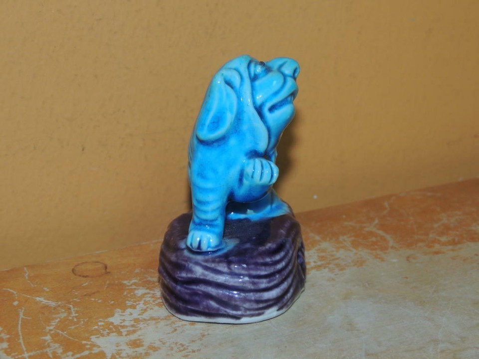 - Chinese Mud Beast 2.25" marked China dog Mudman Antique c1910 turquoise purple