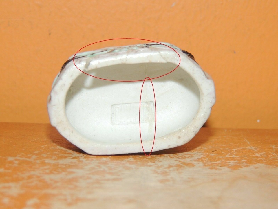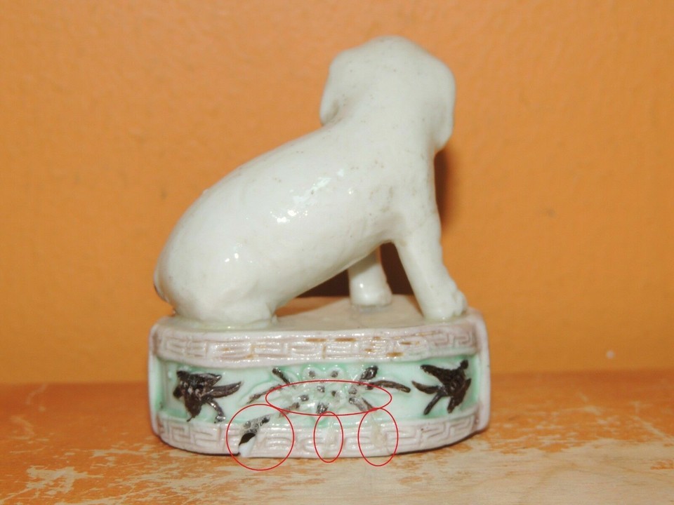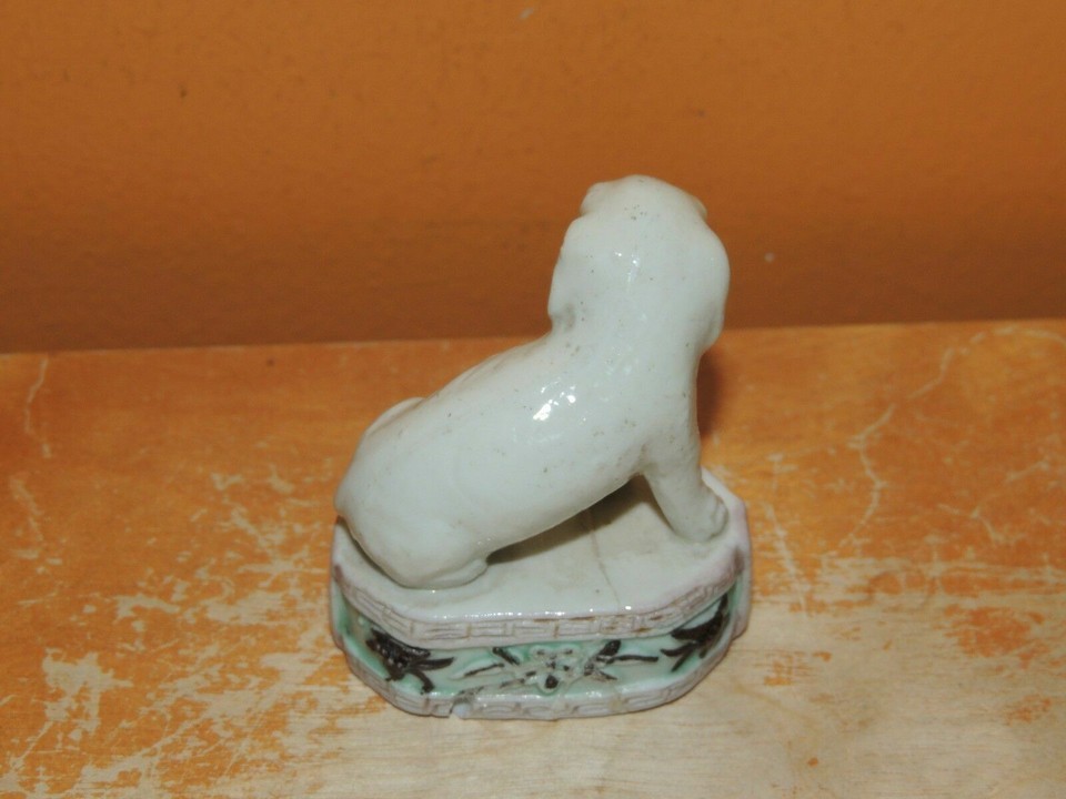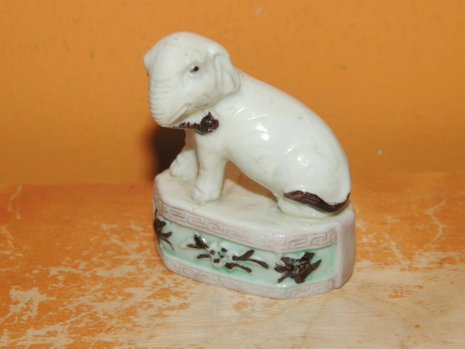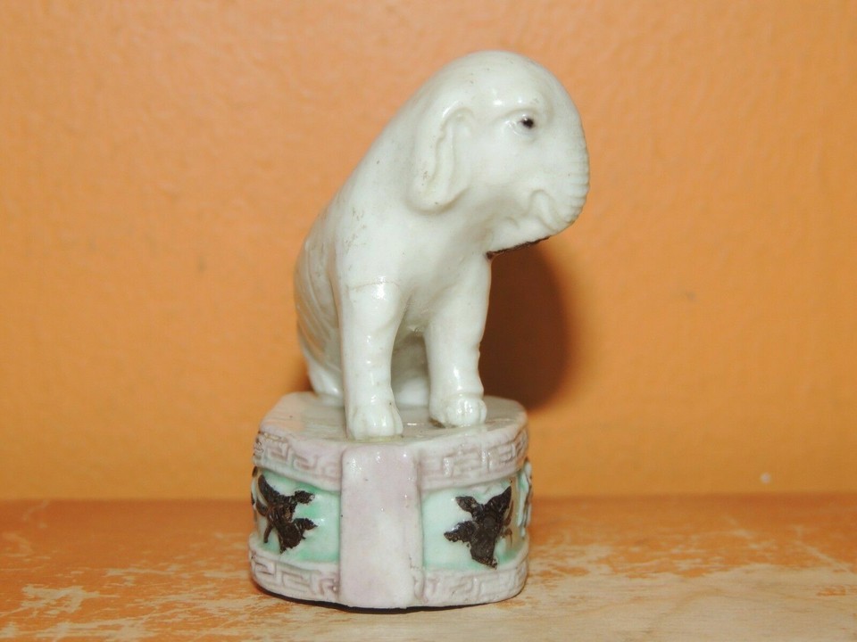 - Chinese Mud Elephant 2"+ marked China Mudman Antique c1910 white purple green