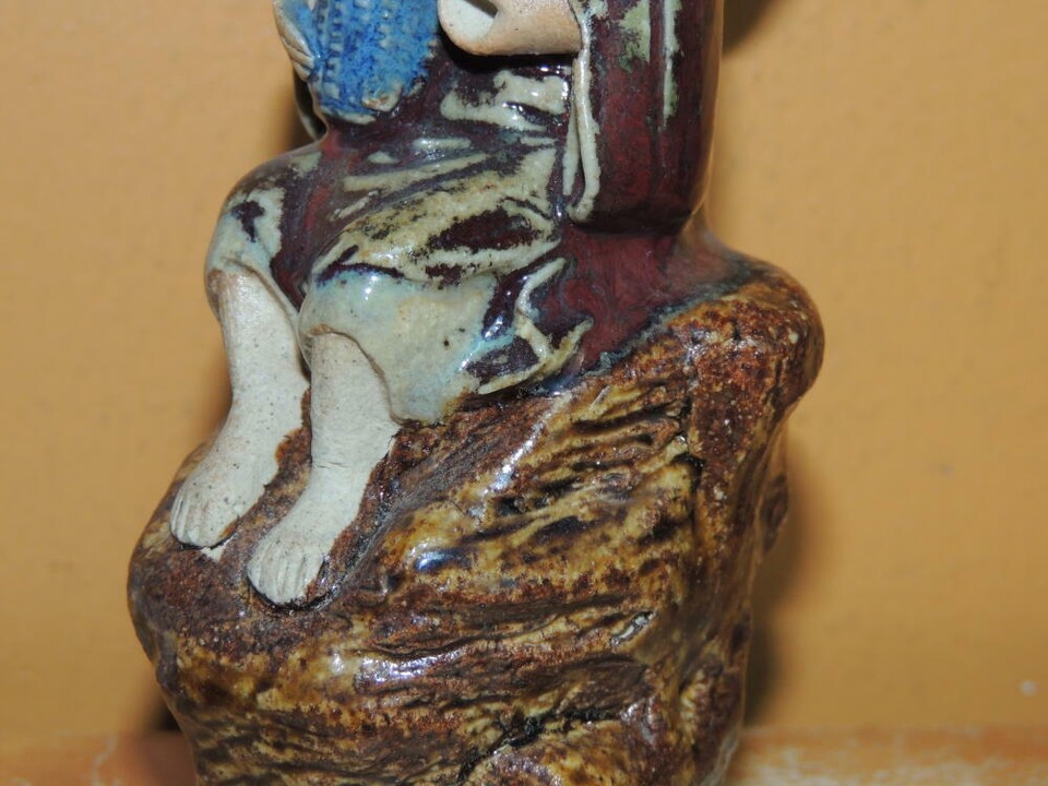 - Chinese Mud Man 4.75" Fisherman Oxblood fish basket Mudman Men Antique c 1910
