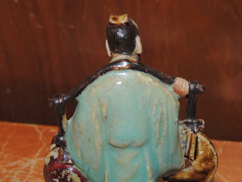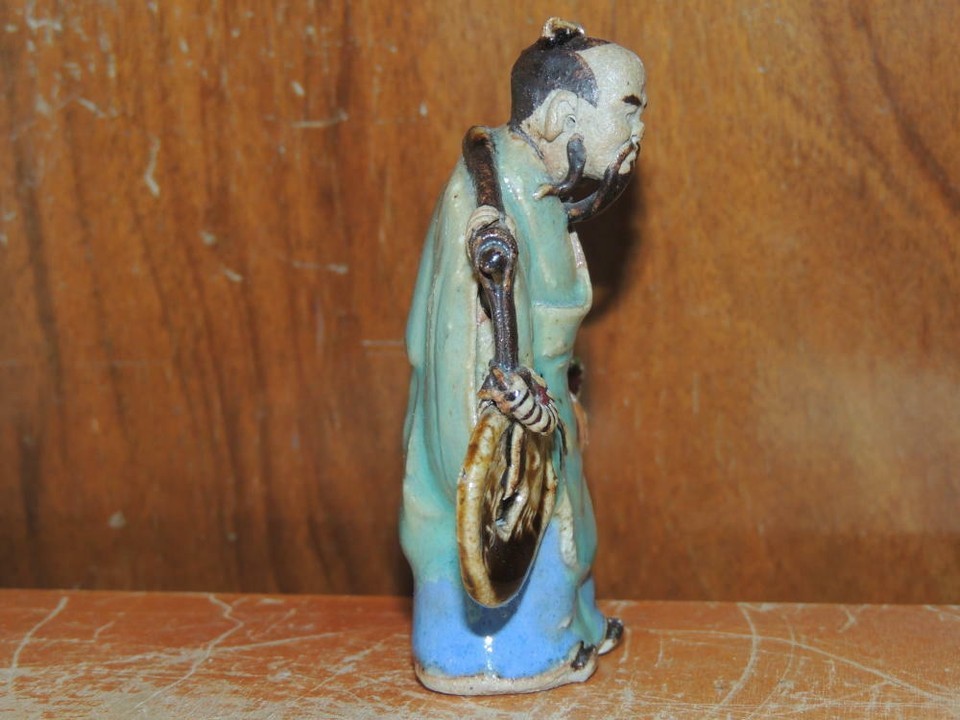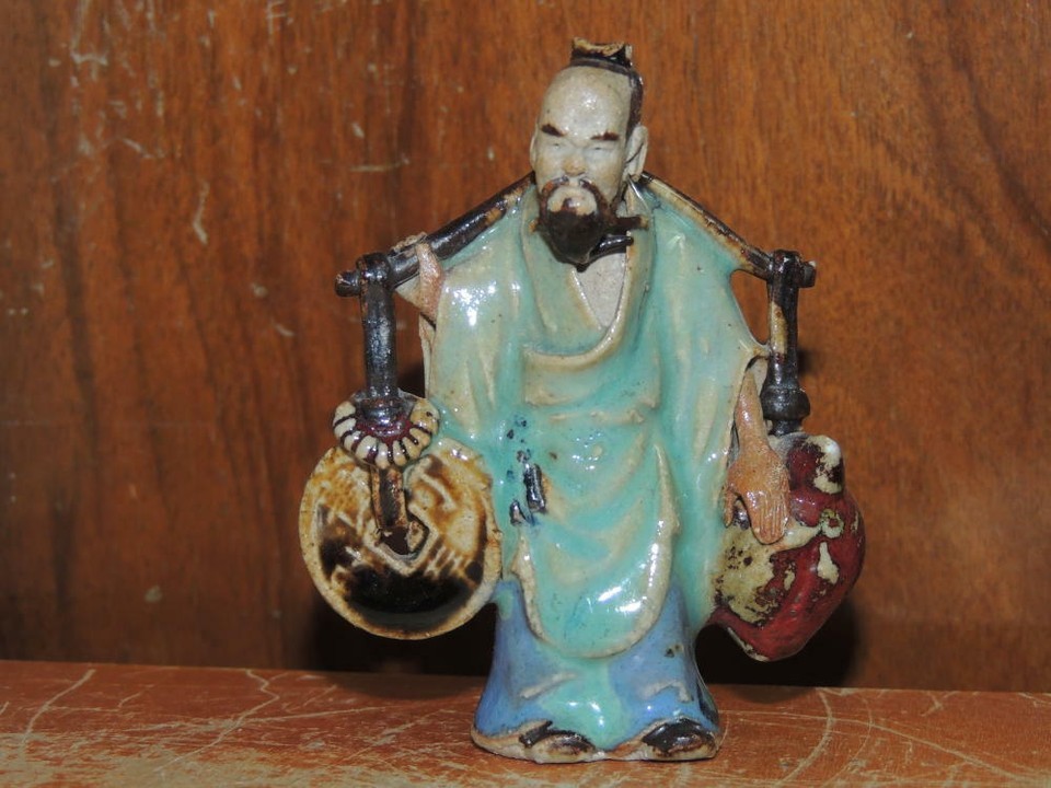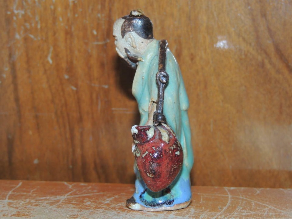 - Chinese Mud Man Men 3" Celedon & Blue fruit coin Mudman Antique oxblood c.1910