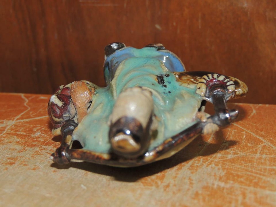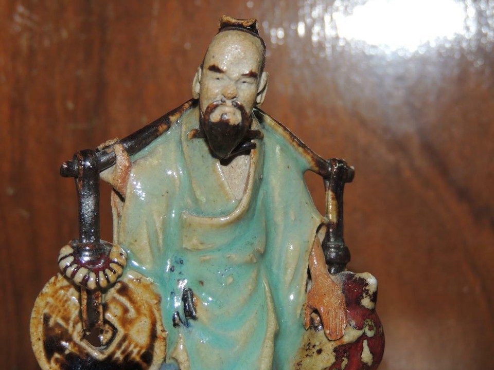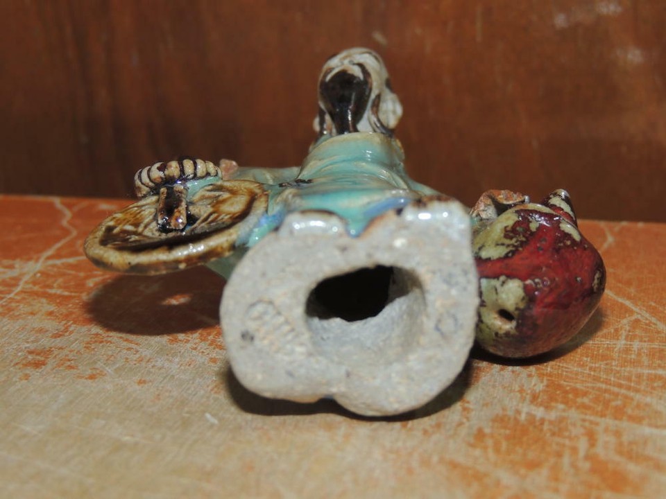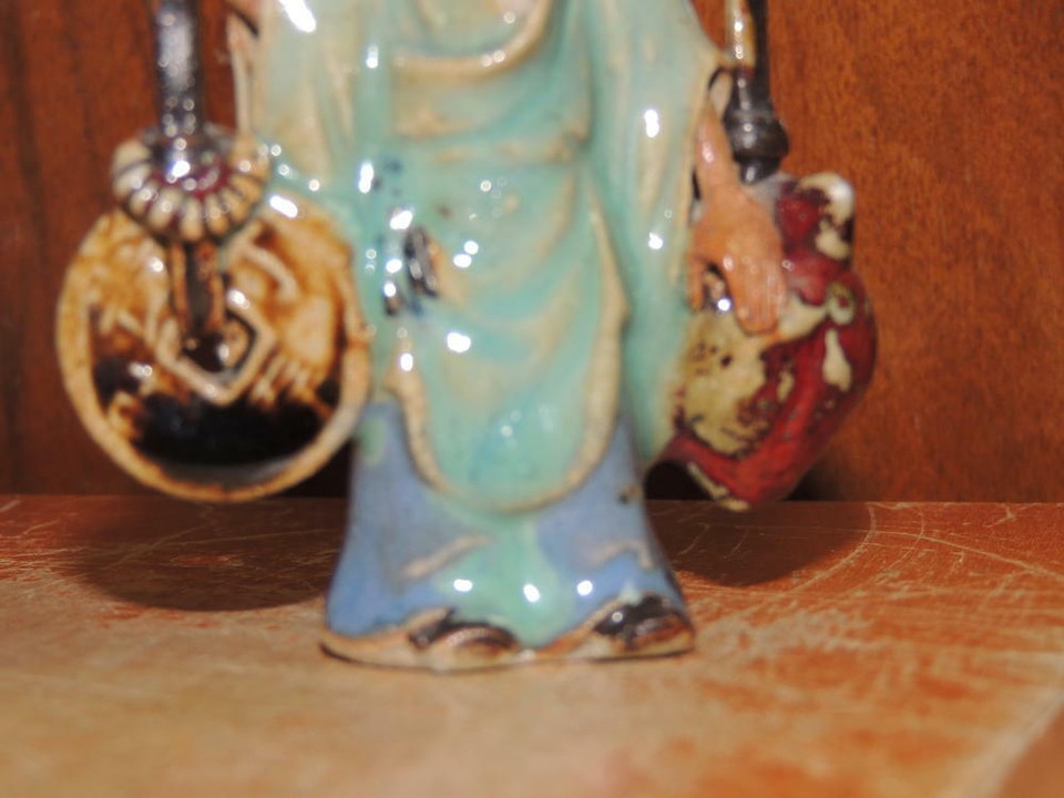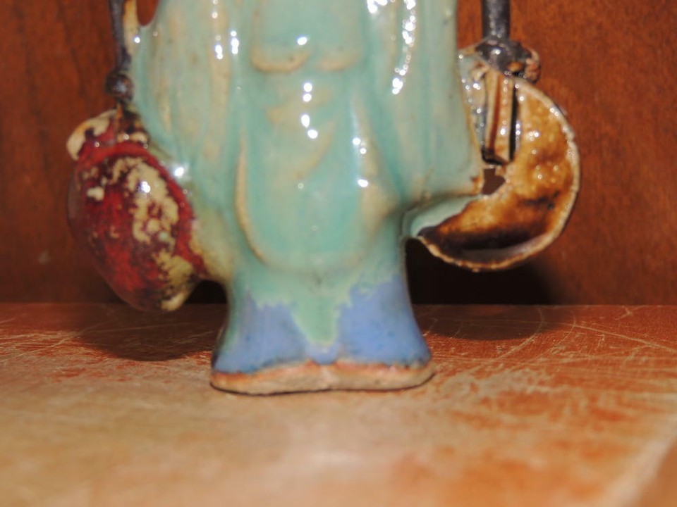 - Chinese Mud Man Men 3" Celedon & Blue fruit coin Mudman Antique oxblood c.1910