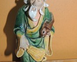 Chinese Mud Man Men 4.25"+ Green & Yellow glaze fish Mudman Antique China c1910