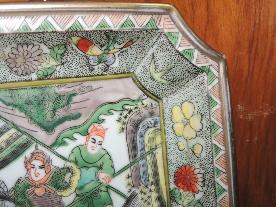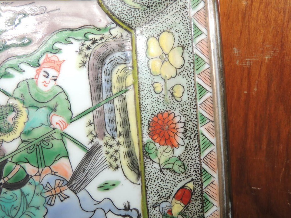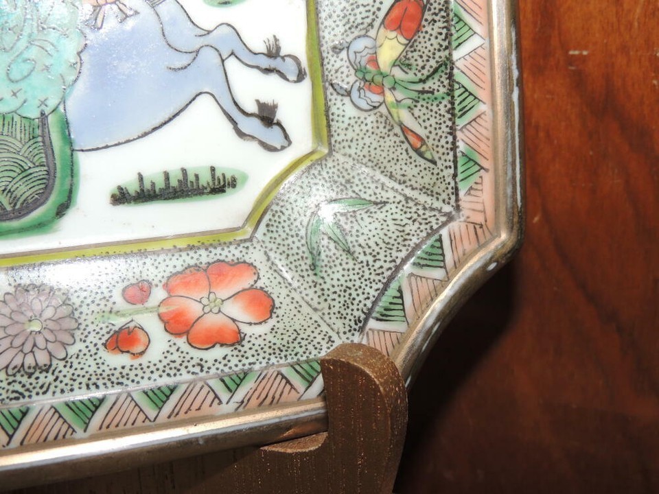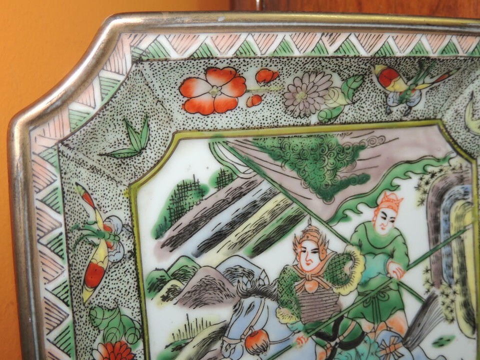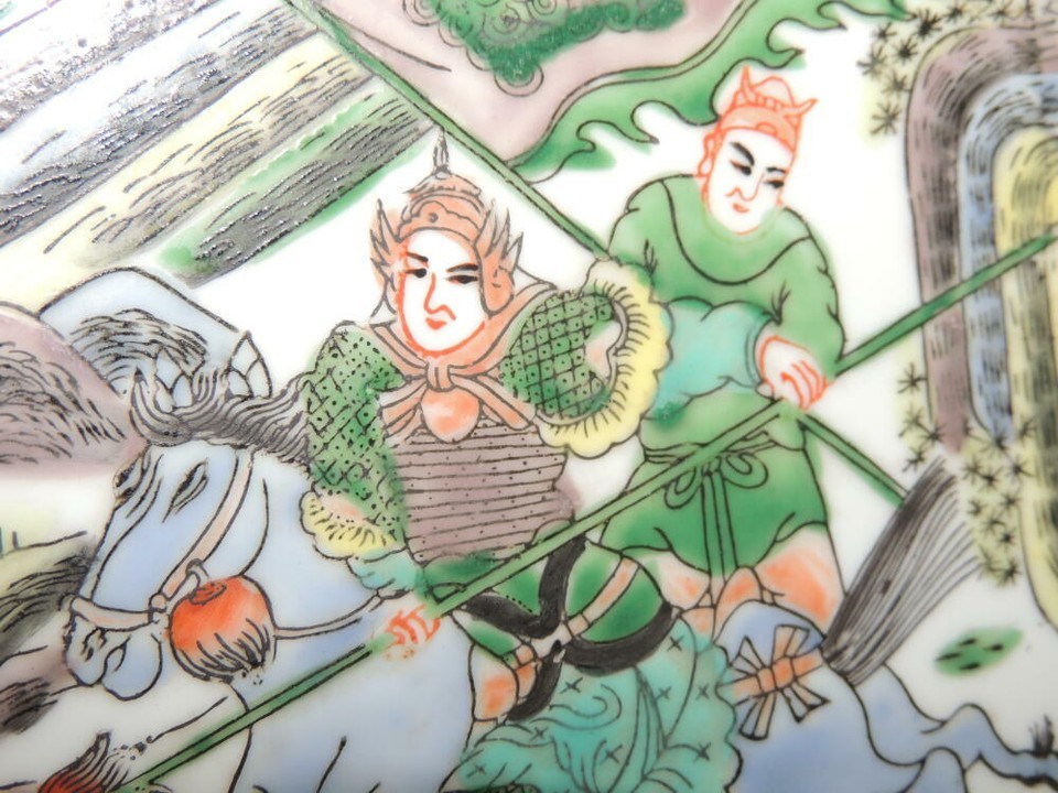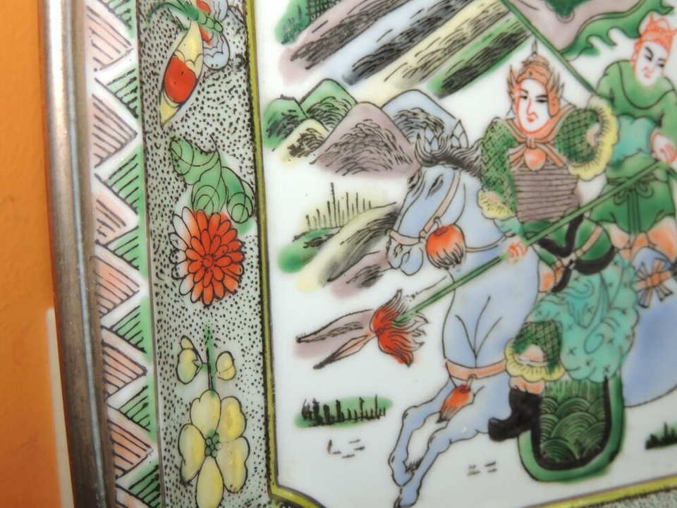 - Chinese Plate 8"+ Famille Verte warrior horse Kangxi Qing mark 17th 18th Antique