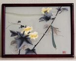 Chinese Silk Screen Embroidery Glass Inlaid Table Screen 16x12 Inch Framed