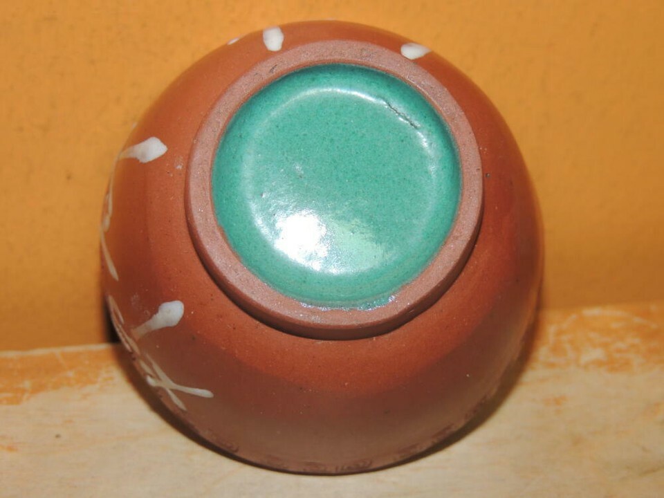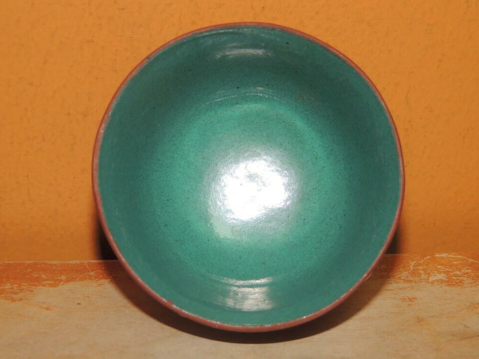 - Chinese Yixing Zisha 2.75" Cup enamel / paint turquoise interior Antique
