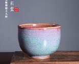 - ChineseJun Porcelain Teacup KilnChanged Purple Green Glaze ArtisanCeramic TeaCup