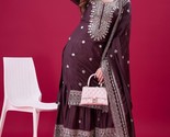 Stunning, fully stitched Chinnon silk set with heavy embroidery and sequence work. Perfect for any occasion.