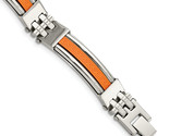 Chisel Stainless Steel Polished with Orange Greek Key Design Rubber Inlay 9 inch Bracelet SRB185