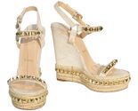 Christian Louboutin Cataclou White/Gold Studded Espadrille Wedge Sandals sz 9