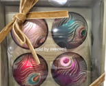 Up for sale we have these gorgeous peacock glass ornaments for your holiday tree. These will look amazing on your tree. The ornaments have gems and gold glitter. These measure approx 4" tall (I did not remove them from box just going by others I have listed for size) size is estimate. These are new in box.