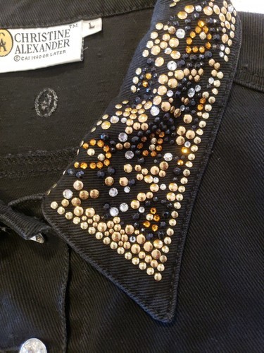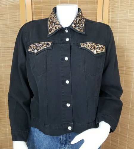 - Christine Alexander Rhinestone Jacket Womens L Black Swarovski Studded Leopard