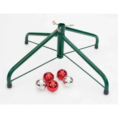 The Jackpost 95-2864 is a durable green metal stand designed specifically for artificial Christmas trees up to 8 feet tall with trunks up to 1.25 inches in diameter. Featuring a 28-inch leg span for solid stability and a foldable design for compact off-season storage, it offers reliable support without the need for water or complex assembly. Constructed from sturdy steel, this stand secures the tree base firmly while blending discreetly under skirts or decor. Weighing 4.6 pounds, it?s ideal for annual reuse with medium to large artificial trees in homes, apartments, or seasonal displays.