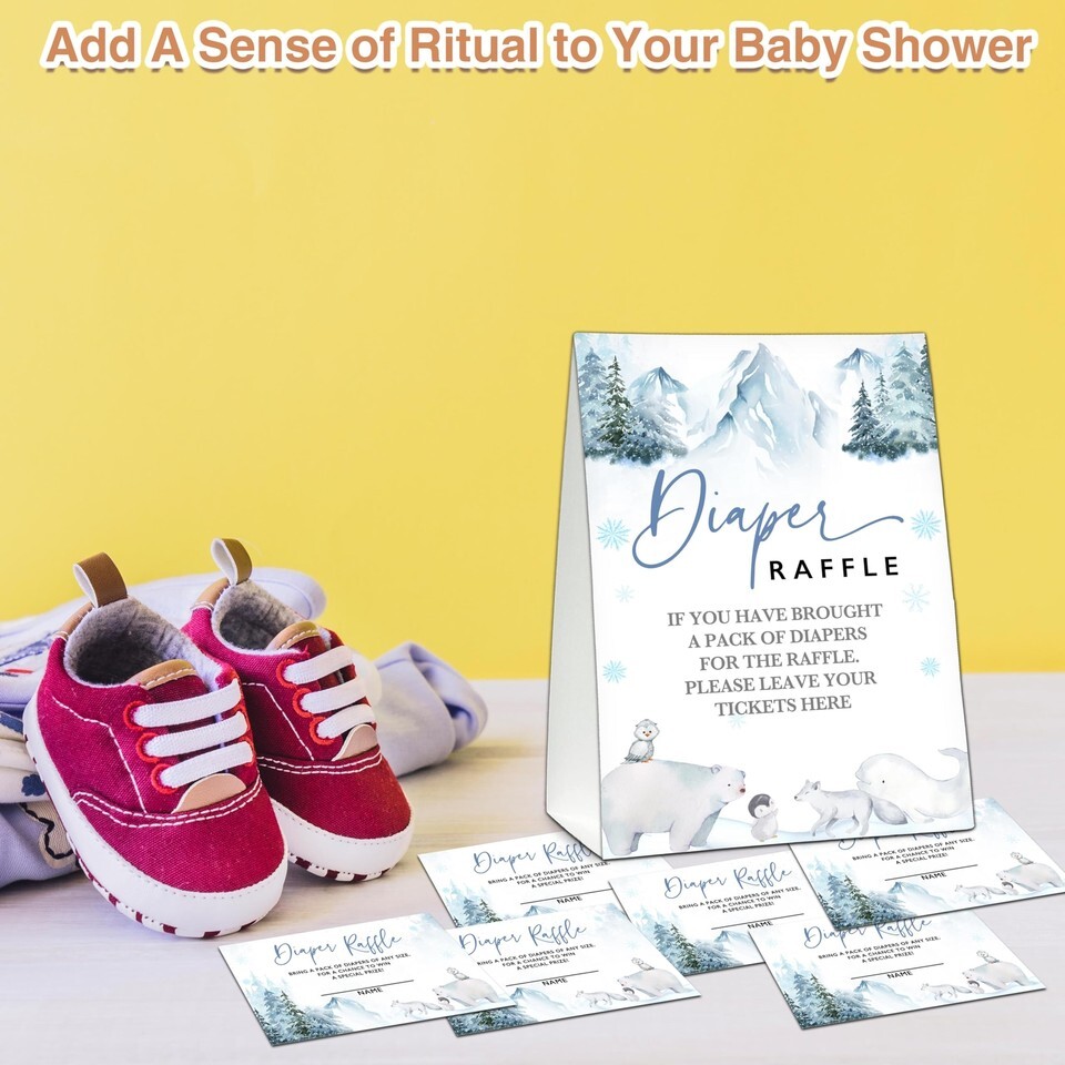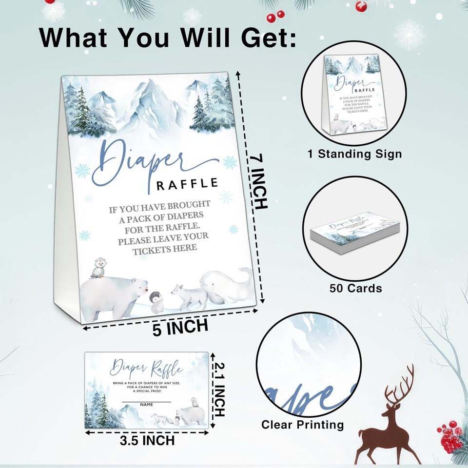 Regular Quantity: You will receive 1 Diaper Raffle standing sign and 50 Diaper Raffle tickets.