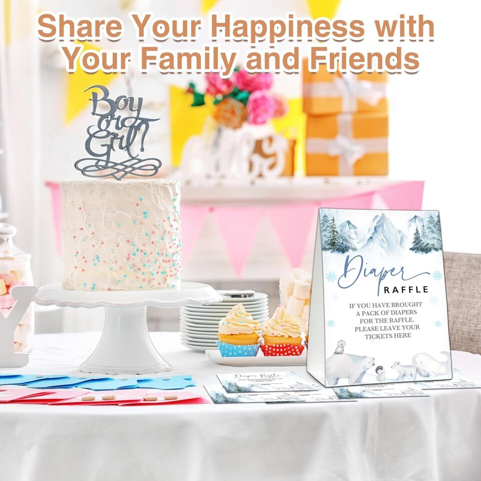 Regular Quantity: You will receive 1 Diaper Raffle standing sign and 50 Diaper Raffle tickets. Baby Shower Game Set Size: Each Diaper Raffle standing sign measures 5 x 7 inches and the Diaper Raffle tickets measure 2.1 x 3.5 inches. Premium Material: Diaper Raffle baby shower game cards are made from thick, sturdy durable materials. Also, you will get a smooth writing experience. Attractive Design: Kick off your baby shower by impressing your friends and family with these exquisite, eye-catching baby shower cards! The Baby Shower Game Set is an ideal mood maker for baby shower games and party decorations to help you enjoy the gender reveal party game.