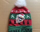 Christmas Beanie Hat Merry Pugmas Red Green One Size Fits Most Lights Up