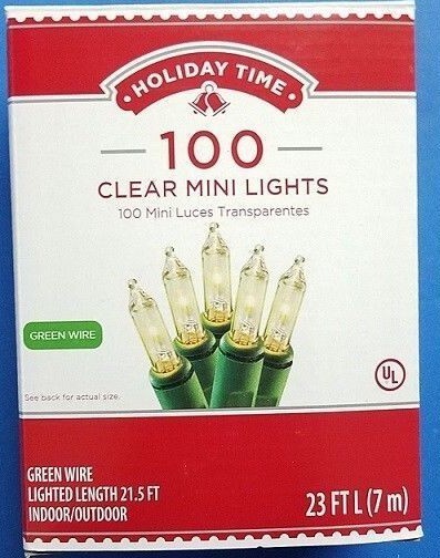 23FT 100 MINI LIGHTS CLEAR WITH GREEN WIRE