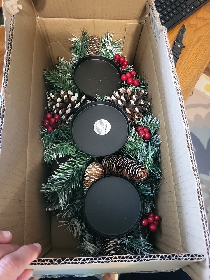 - Christmas Candle Holders Set Table Centerpiece 3 Holders Pinecones Red Berries