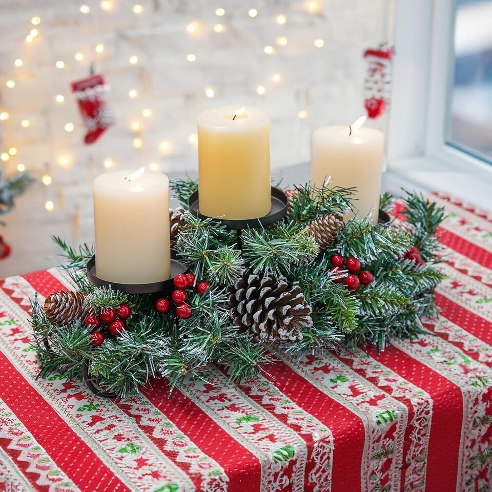 Christmas Candle Holders Set, Candle Holder Table Centerpiece Includes 3 Candle Holders, Red Berries, Pine Cones,Christmas Home Decorations Candle Stand for Fireplace or Table Centerpiece