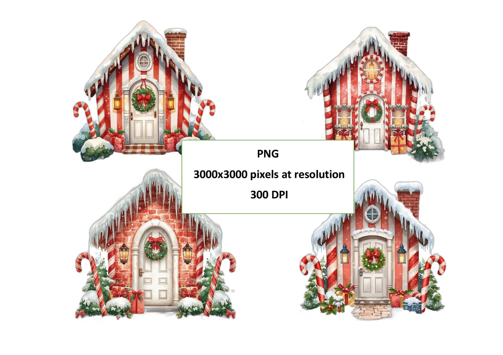 - Christmas Candy Cane House – Festive png / Holiday Illustration