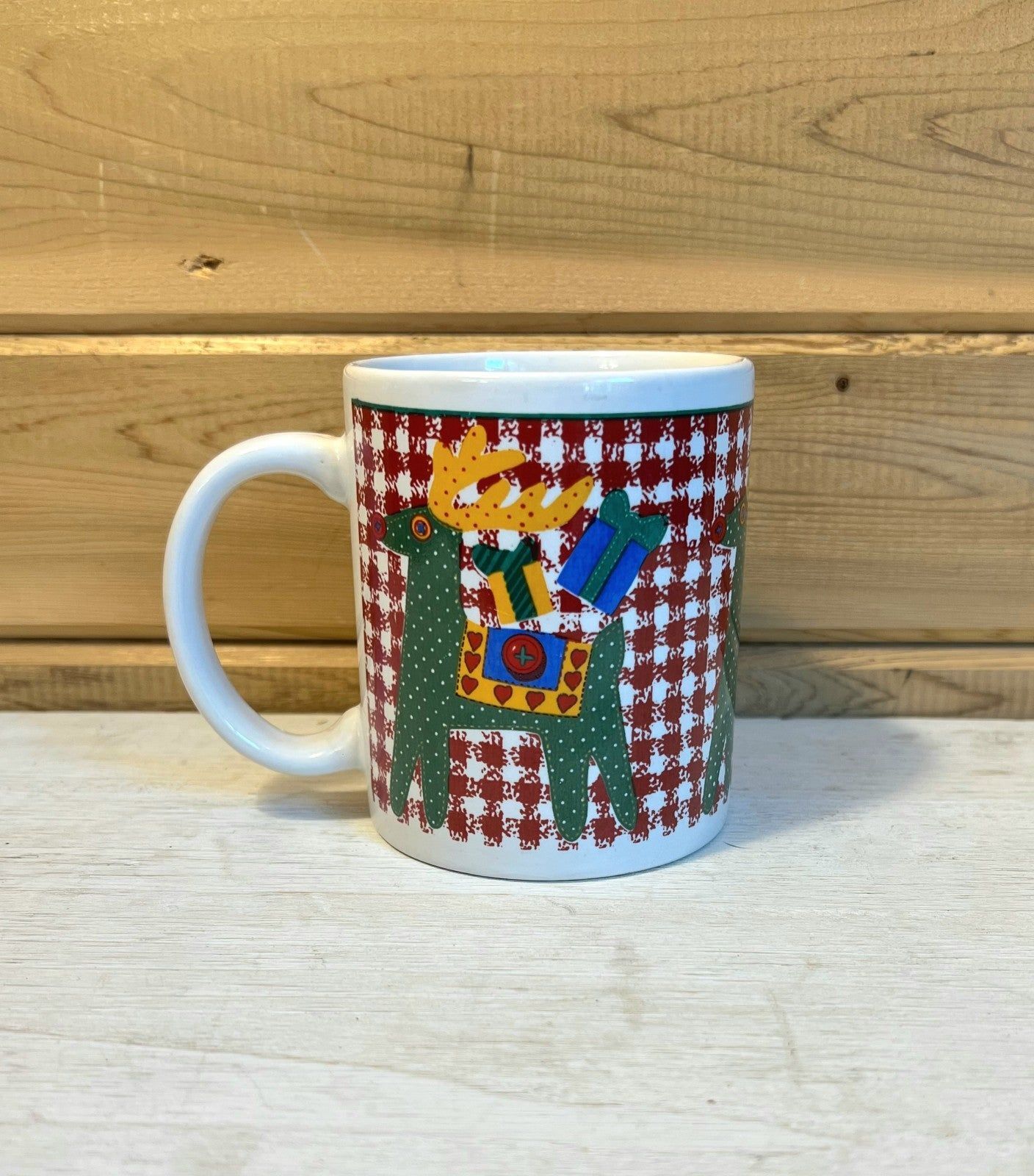 Christmas Checkered Reindeer Vintage 8 oz Coffee Mug