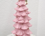 Christmas Coquette Pink Tree With Gold Bow Presents Figurine Tabletop Decor 15"