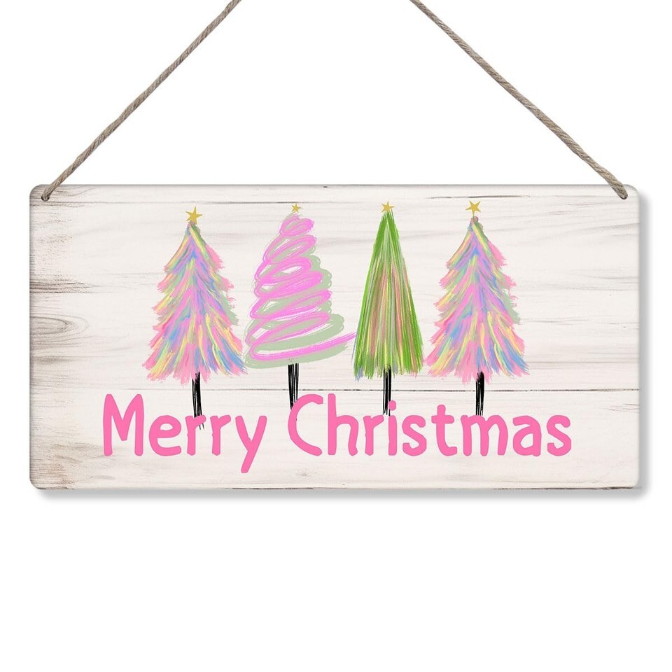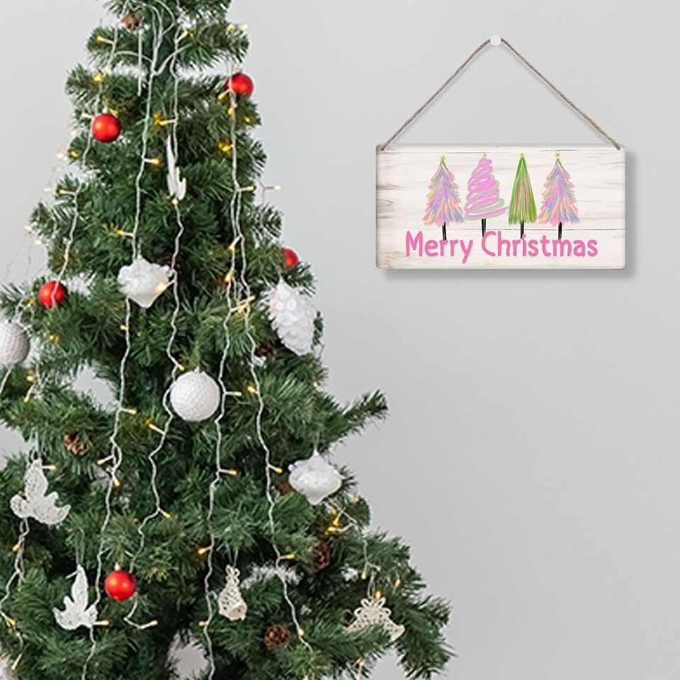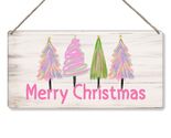 - Christmas Decorations Merry Xmas Tree Decor Pink 12x6 inches