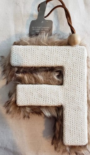 - Christmas Holiday Aspen Binned Fuzzy Furry Brown Initial/Letter "F" Ornament NWT