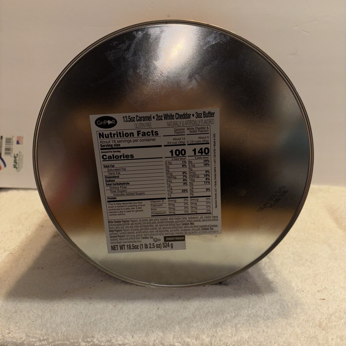 Condition is Brand New, expired popcorn inside, for tin purposes only