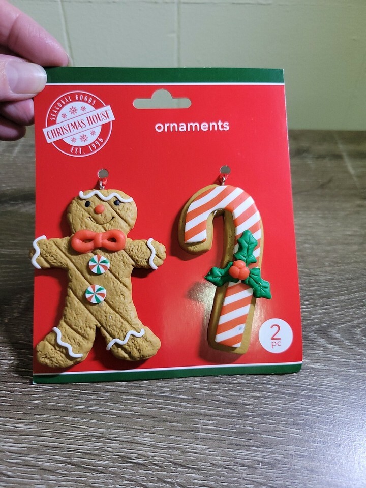 - Christmas House Clay Like Ornaments. Gingerbread Man & Candy Cane H-3.5"