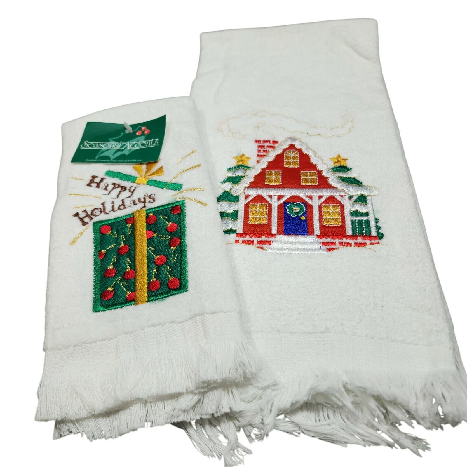 - Christmas House & Happy Holidays Christmas Present Themed Finger-Tea Towels 2pc