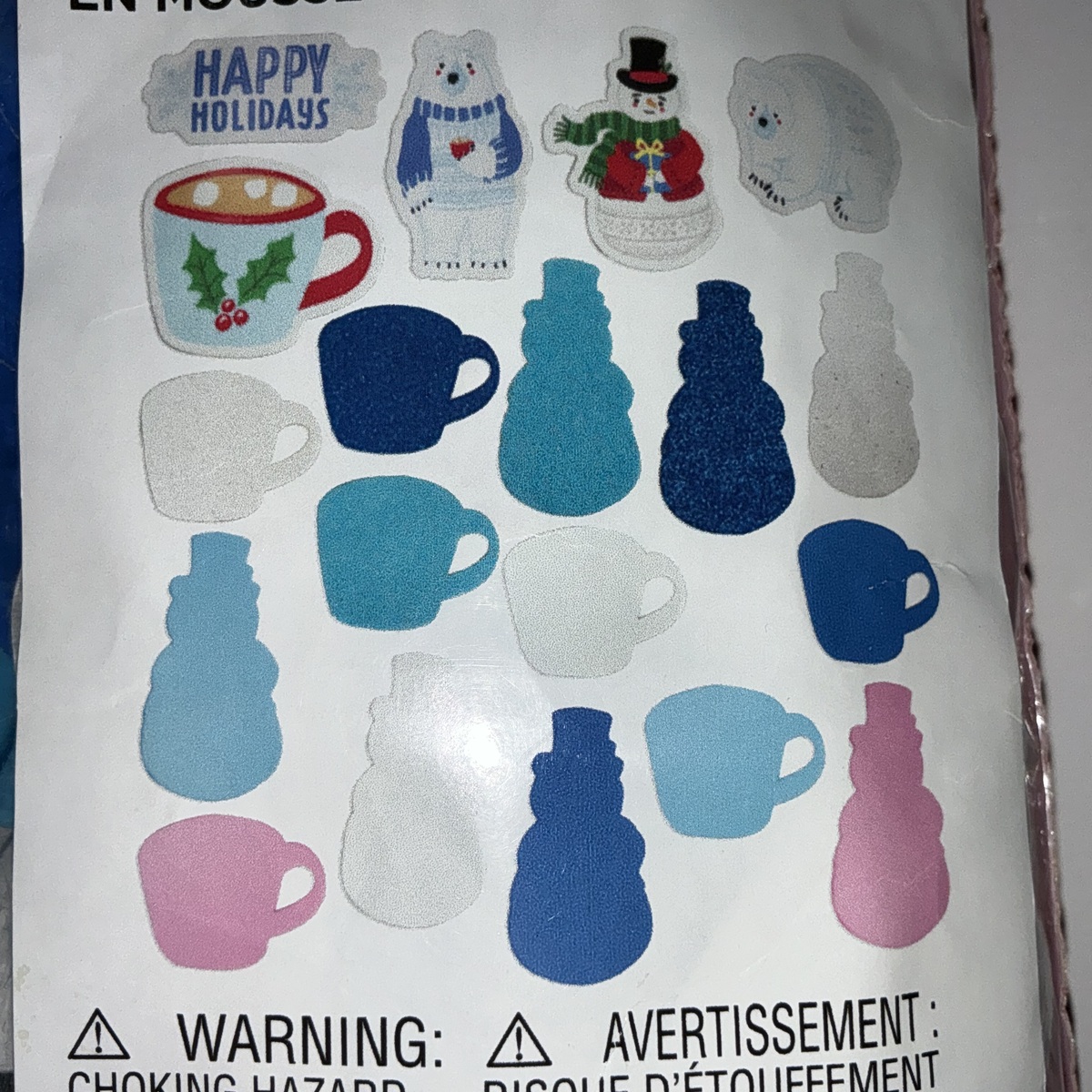 Foam Stickers Regular Holiday Snowman Polar Bears Stand and Regular Standing Also No Glitter and Glittery Sky Blue. And Regular blue. Also has regular foam with nothing on it like Pink and White