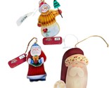 - Christmas Ornament Lot Of 3 Happy Snowman and Santas Lightweight Tin New NWT