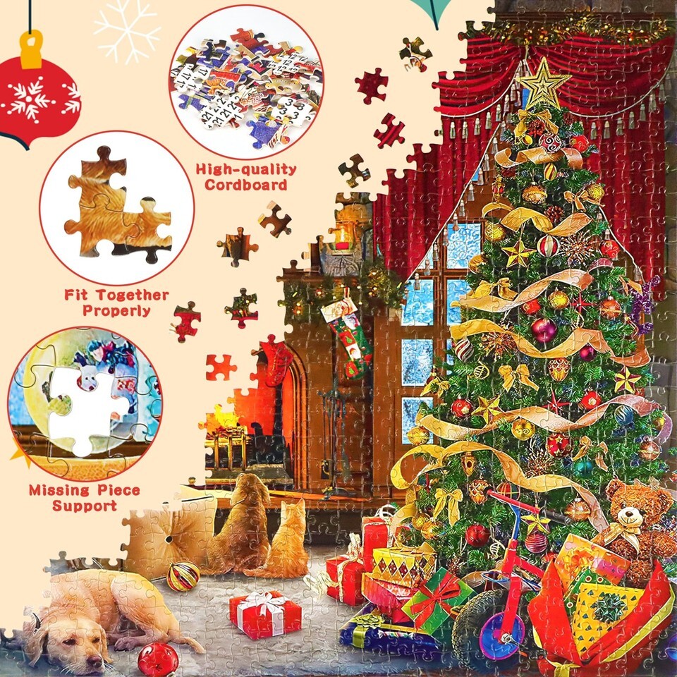 {Unique Christmas Home Decor} - The warmth of the fire shines through the home on Christmas Eve and everything seems so cozy and peaceful, even though it's freezing outside, it doesn't affect the warmth inside at all. Such a very Christmassy Advent Calendar Puzzle is perfect for hanging on the wall as a Christmas decoration. This Christmas advent calendar 2025 makes the Christmas atmosphere even stronger.