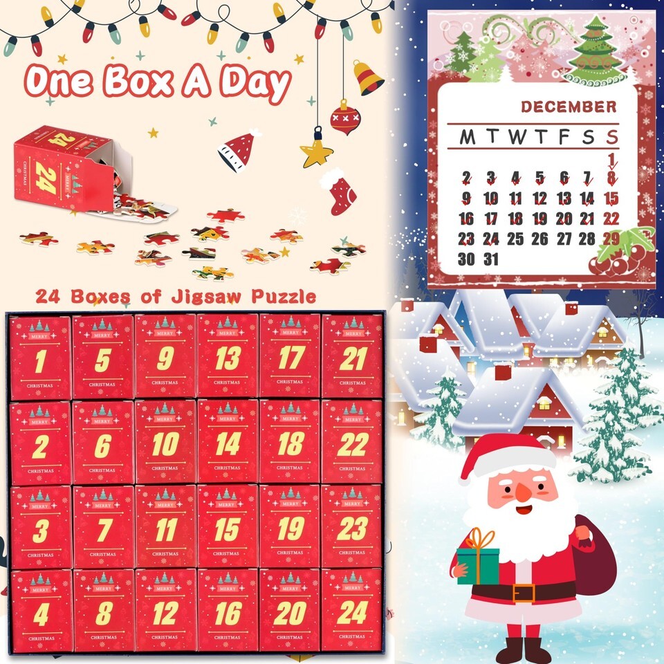 {Christmas Jigsaw Puzzle Advent Calendar 2025} -Are you looking for a Christmas gift different from the traditional? Come and try our advent puzzle calendar 2025 which is interesting for play and meaningful for record. This advent calendar puzzle contains 24 numbered boxes, each containing 42 pieces that are part of a 1008-piece puzzle. Finished puzzle size: 27.5*19.7in/ (70*50cm).