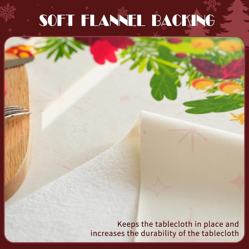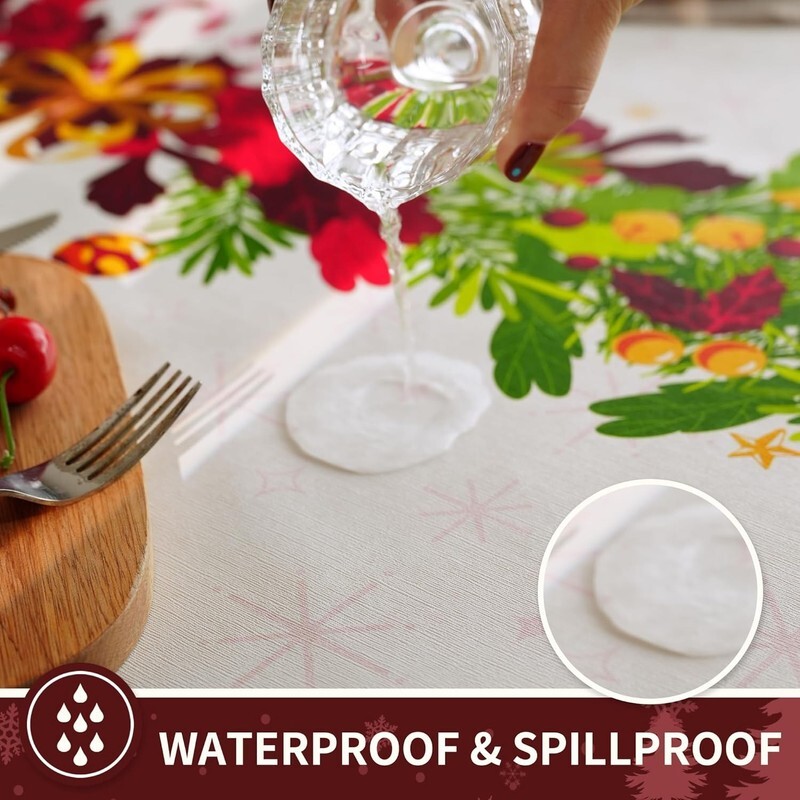 ?Easy to Clean?Cleaning is a breeze! Simply wipe the surface with a damp cloth, and the christmas tablecloth looks brand new. No need for messy laundry, making post-dinner cleanup after Christmas gatherings quick and effortless.